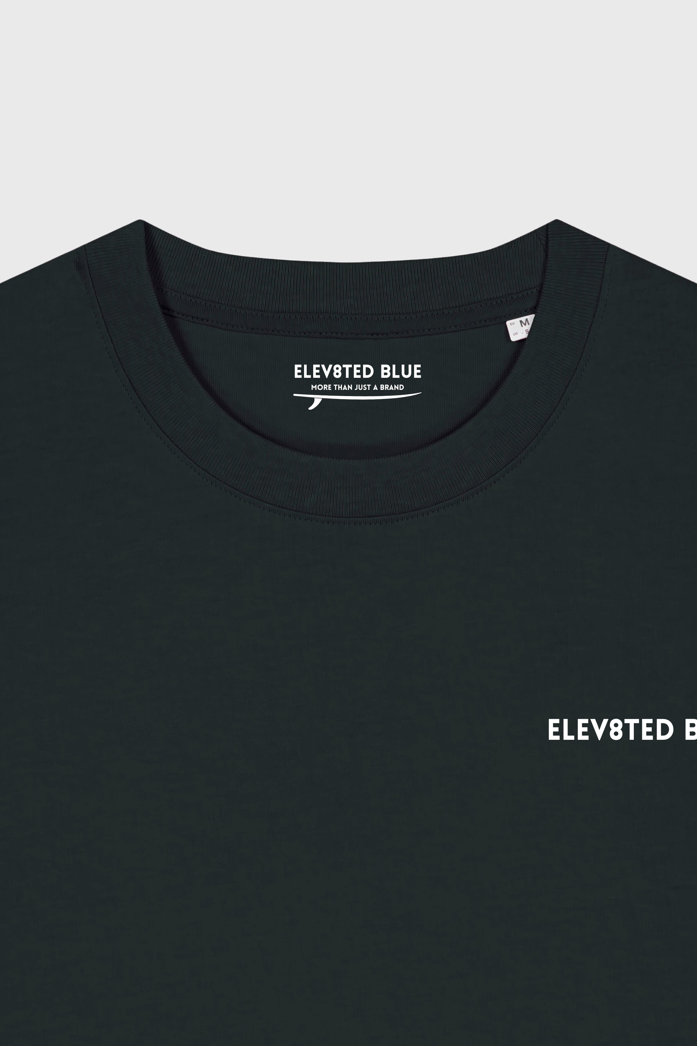 Our iconic heavyweight tee in jet black. Featuring our Ripple design on the back. Made from high-quality 100% organic cotton, which offers an incredibly soft and comfortable fit. The front showcases our classic Elev8ted Blue logo on the chest, adding a touch of timeless style. Our tees are build for durability and designed for everyday wear. This shirt combines comfort, craftsmanship, and sustainability, making it your new favourite tee