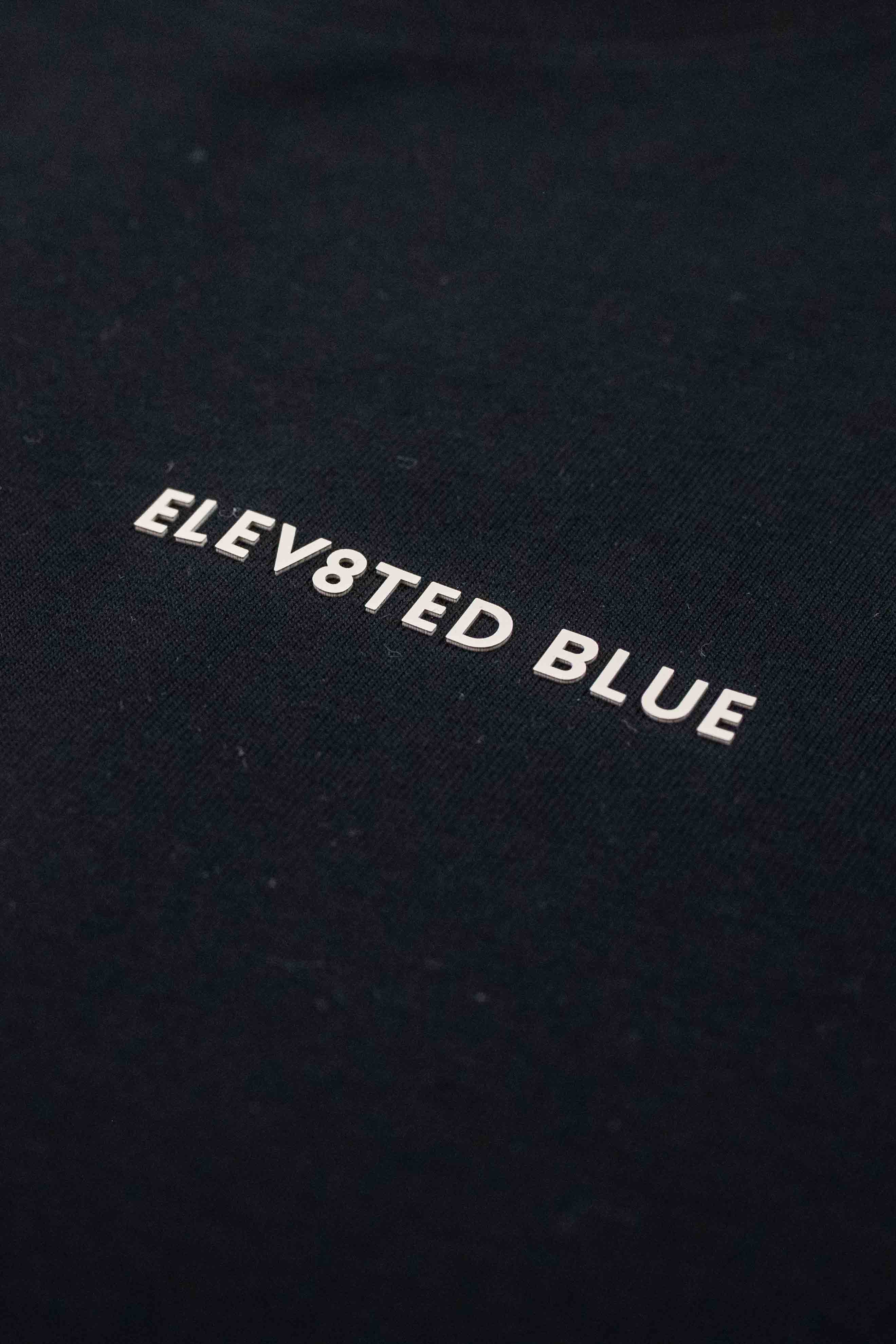 • bold 3D Elevated Blue logo on the chest