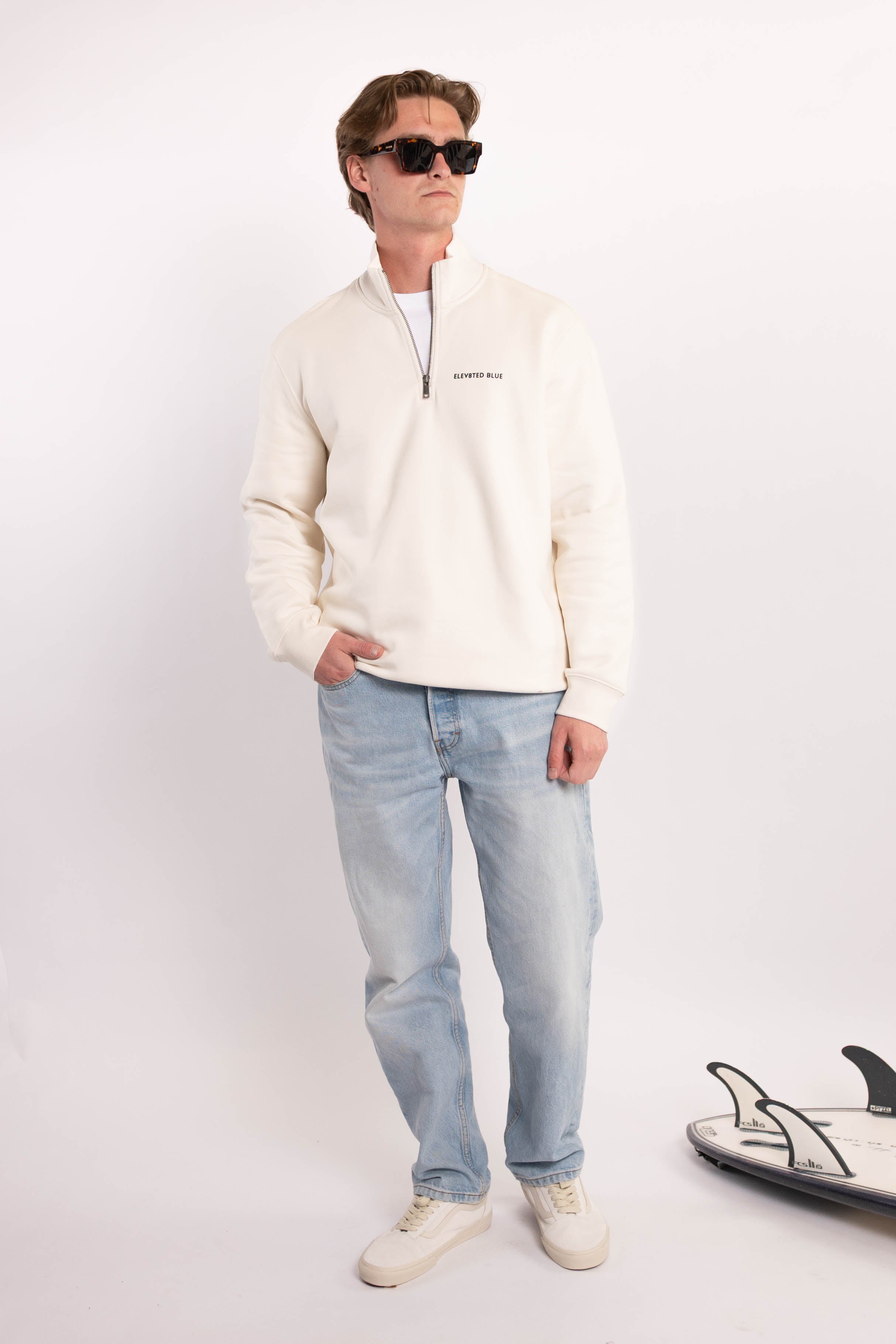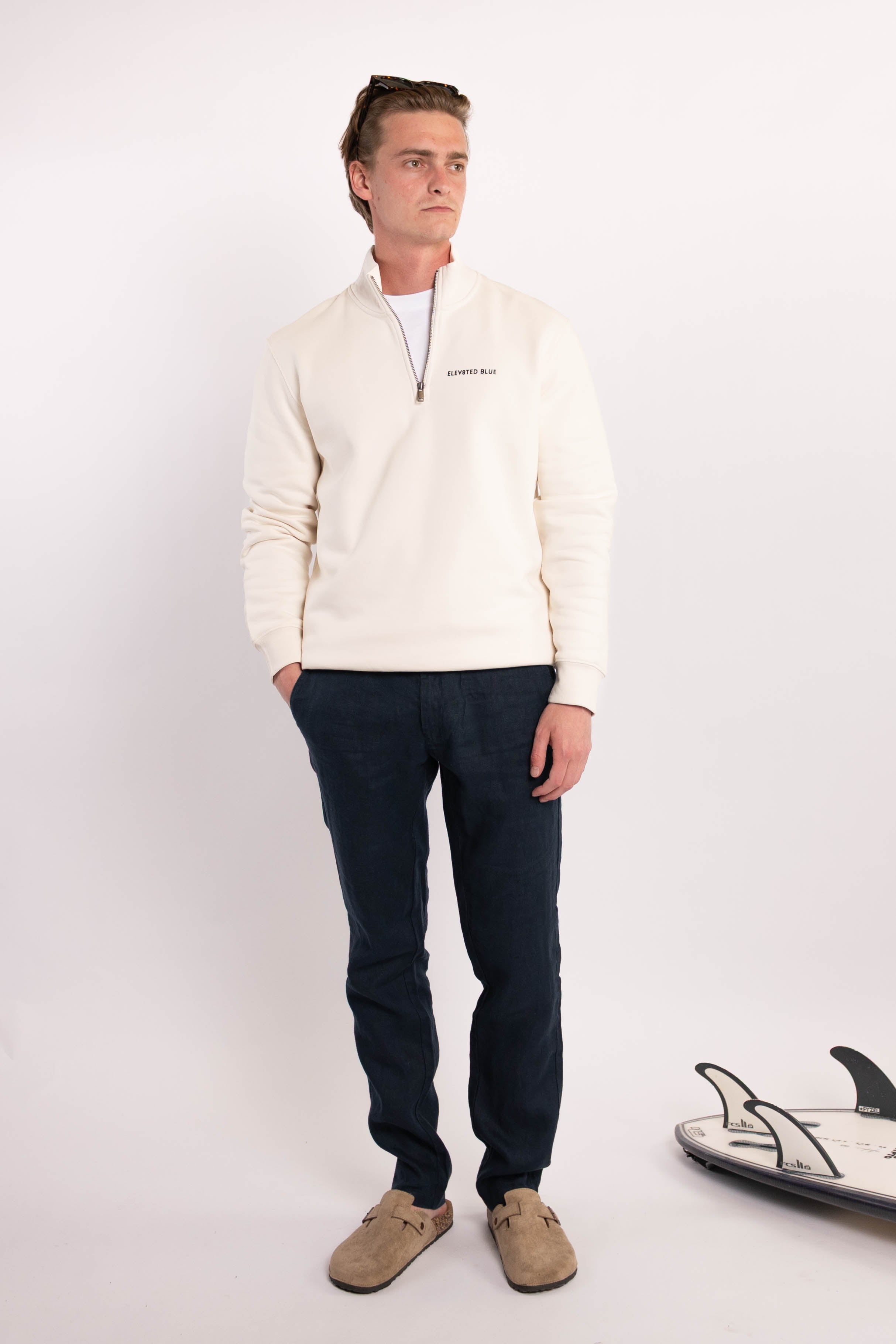 Introducing our quarter zip sweater — clean, elevated, and made to move with you. Crafted from thick, premium cotton with a soft brushed inside for ultimate comfort. Designed with a slight relaxed fit, it’s built for both smart and casual occasions. Finished with our classic Elevated Blue logo on the chest, this piece is all about timeless style and everyday quality.